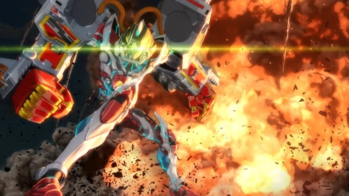 Elsewhere, the action remains top-notch, with the three-way dance between Gridman, Anti and the Monster-of-the-Week a great melee. The attempt by the NG Junior High students to all use their powers at once is a good example of how Gridman justifies a trope by turning it into a fun visual gag, rather than just falling back on saying ‘that’s the way it is’. We beat the ‘show don’t tell’ drum a lot here, and this is a fine example of doing just that. It’s kind of odd they’d use Max and his Battle Tracto for a second week in a row, rather than busting out a sweet new powerup, but this does at least give us the wonderful visual gag of Gridman powering up with giant arms then defeating his opponent by Rider Kick instead. Even in a ‘lesser’ episode Gridman finds time to deliver top-notch action and surprisingly substantial character development, and I continue to be impressed by how it’s going about its business.
