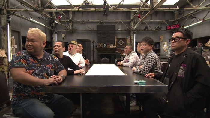 The premise is simple – ten comedians enter a room with a 6-hour time limit, and they get a strike every time they laugh. If they get two strikes they’re out, and the winner takes home 11 million yen (though honestly I call shenanigans on that part in particular). The comedians that show up aren’t small names either, as Matsumoto is such a comedic juggernaut that his association with this show can pull in almost anyone he’d like. Plus Jimmy is here, and Jimmy is great.