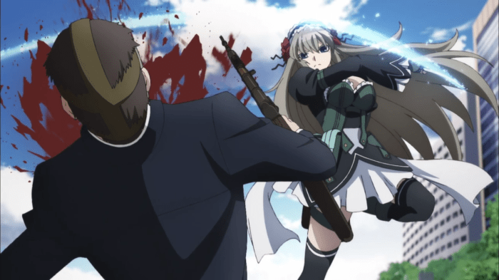 This is a good concept with average execution at best. At least from what I’m seeing in the first episode and projecting for the rest of the series, I don’t think they’re fulling taking advantage of the premise. I mean, I don’t really want another dark and gritty deconstruction of Magical Girl shows, but why even bother bringing them up if you’re not going to toy with genre conventions a bit? The Magical Girl angle just seems like an excuse to give the girls super powers, which they could have obtained in any number of ways. And the guns just seem to be there for an extra layer of EDGE. Add that all up and the show doesn’t seem very interesting.