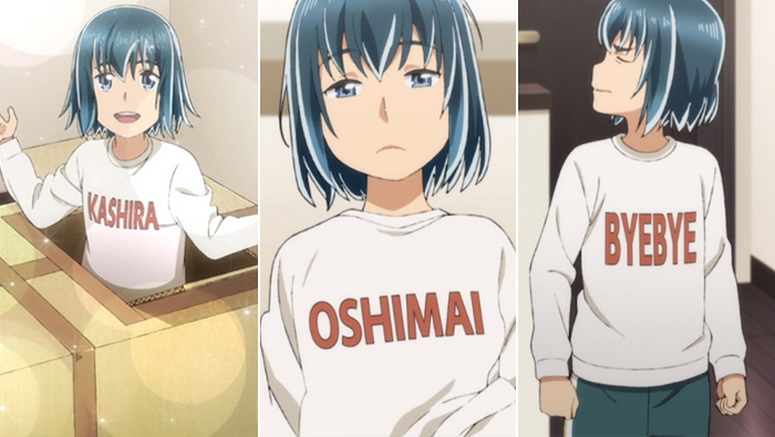 Hina’s simple text only shirts start off with words that seem a bit too convenient for the situation, then evolve into practically sentient entities that predict her feelings. Is this one of her psychic powers, or does she just have a very deep closet? We may never know.