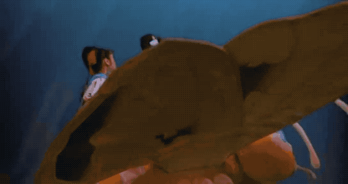 1:03:24 The second song of the film, set to the hatching and travel sequence of a new Mothra