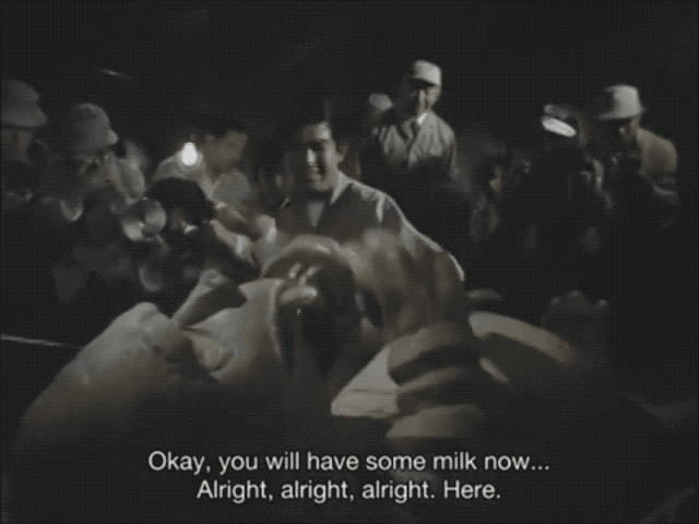 42:57 Baby Daigoro gets fed with a comically large paper mache baby bottle and we don’t know how to feel about it