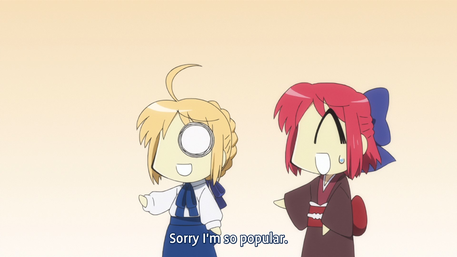 Again, I kind of feel like a hypocrite for lambasting Fate‘s trend towards pandering and fanservice while also saying the best version is the original. I envy those who can unironically cheer for their favorite things, who can latch onto a property and keep on loving it through hell or high water. If I’d written a post in 2013, I’m sure I could have given a much more detailed, enthusiastic explanation of exactly why Fate is appealing, but its meteoric rise has left me in the dust. On some level, I don’t know what to think anymore. The more I hear about the franchise’s new hotness, the less I seem to care.