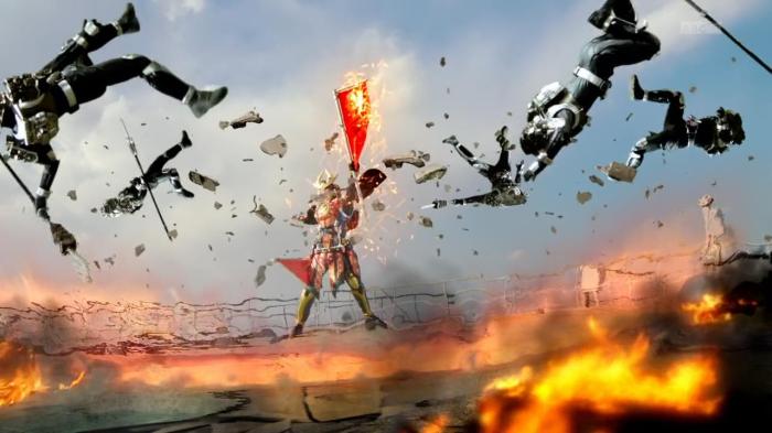 Heroic comebacks are part of the staple bread and butter of fiction. They’re the air that tokusatsu shows breathe – you can barely go a handful of episodes before we come across the hero being beaten down and then rising up again, preferably with the help of a sweet new powerup. But, as ever, it’s different when Gaim does it. Here’ it”s more than a beatdown that hero Kouta is trying to recover from – it’s the knowledge that he, however unwittingly, killed his best friend. That’s heavy stuff for any show, and yet somehow Gaim does a better job of articulating self forgiveness and making mistakes than a dozen serious dramas. And by marrying Kouta’s comeback to a spectacular battle on top of Yggdrasil Tower the show demonstrates our hero is alive and kicking again in the most emphatic fashion. Yes, the CGI is awful but who cares? This is delicious kick-assery in the most satisfying possible manner.