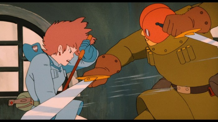 As many a modern light novel has taught us, flawless characters are inadvertently a political statement in and by themselves — as their flawlessness makes whatever they do or say go unopposed, and therefore stripped of any and all nuance. This idea is often discussed when it comes to wish-fulfilling male heroes like Sword Art Online‘s Kirito, but it goes for female characters as well. All too often, girls in anime are portrayed as pure and innocent in service of a belief that pure and innocent is what a woman should be. Nausicaä is different, however, as her purity refers to a purity of belief, rather than a purity of behaviour. She embodies a righteous cause rather than regressive ideas — her purity does not restrict her, but allows her to fully blossom as an admirable protagonist in her own right. This is why it is important that Miyazaki shows that Nausicaä’s innocence has its limits. While her dedication to protecting her family, her friends and the creatures of the Sea of Decay is immaculate, her actions in doing so are not. The aforementioned rampage re-contextualizes what kindness means to Miyazaki — not the kind of milquetoast friendliness that is so often associated with femininity, but an unwavering, incorruptible dedication to doing good to those who need and deserve it. That makes his heroine not just a feminist power fantasy, but a radical one as well.