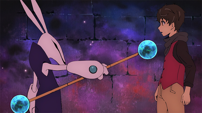 By far the more interesting aspect of this series is the production. There seem to be two distinct art styles going on, and it keeps switching from loose and sketch-like to a more anime-conventional but nicely fluid look. I can definitely appreciate both, although I wish the show had stuck to just one of them, because while interesting to physically watch, I find the inconsistency quite distracting. The music, on the other hand, is excellent and I’m ready to sign up for more of it immediately. Possibly for that reason alone, I’m willing to give this show one more episode to see if what it has hidden up its sleeve is some actual substance, or just more confusion.