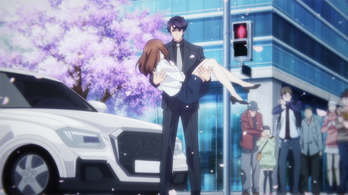 Look, all you need to know is that there’s a pretty heroine, just plucky enough to have a semblance of a personality, and there’s a bunch of pretty boys, all of whom have exactly the same face but with different hair and eye colours and various fashion choices. There’s also plenty of bland J-pop music of the male idol variety, and despite the slight novelty of the main characters all being working adults, most of them still look (and sound, and act) like high school students. There’s absolutely nothing here we haven’t seen literally hundreds of times before – I kid you not, watch just the first one minute or so and you’ll see some very familiar first episode story beats – but hey, maybe some people derive a sense of comfort or even enjoyment from the familiarity. I am, quite clearly, the wrong audience for a shoujo music/superpower series based on a dating sim.
