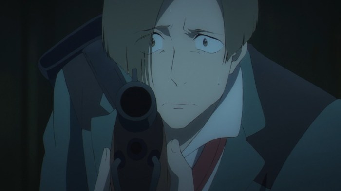 What am I supposed to gather from this? It seems clear that the Empire are the baddies. But the show’s framing – regardless of the content – seems hell-bent on making the resident Imperial representative Leocadio out to be a Good Person Despite It All. It’s only his bosses like Commander Helman and Diet Member Mary Bult who are bad, right? And look, Headkeeper must be just as bad, if they’re willing to deal in Grape Kool Aid! Especially considering context from the game (which I noted a few weeks ago), I’m baffled that I’m apparently supposed to consider the Empire and Headkeeper on equal terms, let alone Leo just as much of a protagonist as Innumael. As things stand, I don’t see how Magatsu will try to resolve this conundrum.