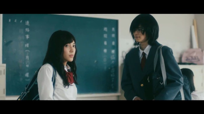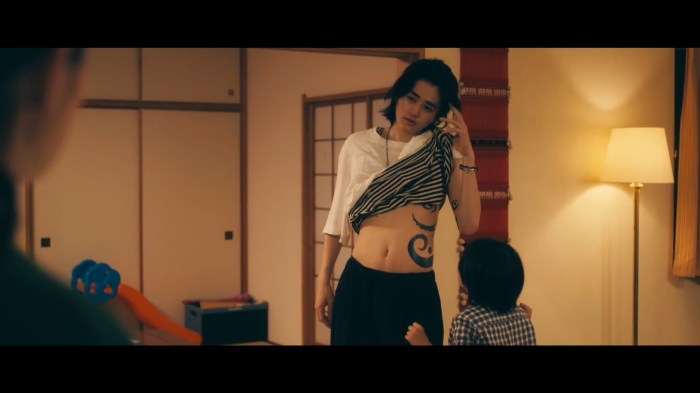 Nonetheless, the first episode of the live-action Horimiya does a fairly good job at showing it can do some things that the anime cannot. Izumi’s isolated past feels a lot more real when we see him as a child being left out of groups at school. His shaggy long hair is much more convincing at being a way of hiding away from others and covering his piercings, and the show knows it too. The scene in which Izumi reveals his tattoos to Toru is moved to the school roof, where they get to use a light wind to naturally reveal his piercings as part of that conversation. Using the winter uniform to cover his tattoos is also far more obvious when you see the rest of the school in their summer clothes.