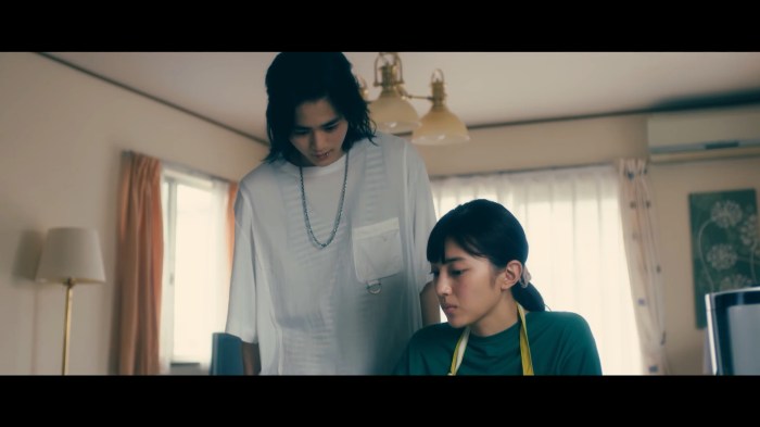 There are a handful of minor differences between this and the anime, but the most significant change in the first episode comes with Kyouko and Izumi’s first meeting outside of school. In the anime Souta shows up at home with a nosebleed, and only after fussing over him does Kyouko realise that a man with a bunch of piercings has escorted him home. In the live-action, Souta’s teacher phones Kyouko to say he’s gone missing, and that a man with piercings had been seen with him. We also get to see a very abstract version of Souta and Izumi meeting, which is considerably dialling up a kidnapping angle, before the two arrive home and the scene largely plays out the same from there.