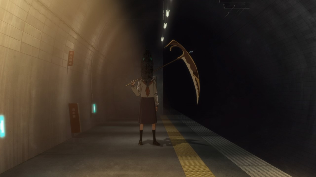 I think my biggest fear is how, for want of a better word, anime things have suddenly become. Wonder Egg has been a great show partially because it’s largely eschewed some of the typical cliches of the medium, by embracing emotionally-lead, character centred stories over complex plot construction or worldbuilding exposition. Now though we’re definitely beginning to see the hallmarks of a classic conspiracy plot, especially regarding everything to do with the two Accas, what with the reveal of their former human identities and their founding role in Japan Plati who, lest we forget, were responsible for the creation of Neiru. Likewise, the introduction of the mysterious ‘reaper’ is certainly shocking and memorable, but also reflects a movement towards a more traditional protagonist/antagonist narrative structure.