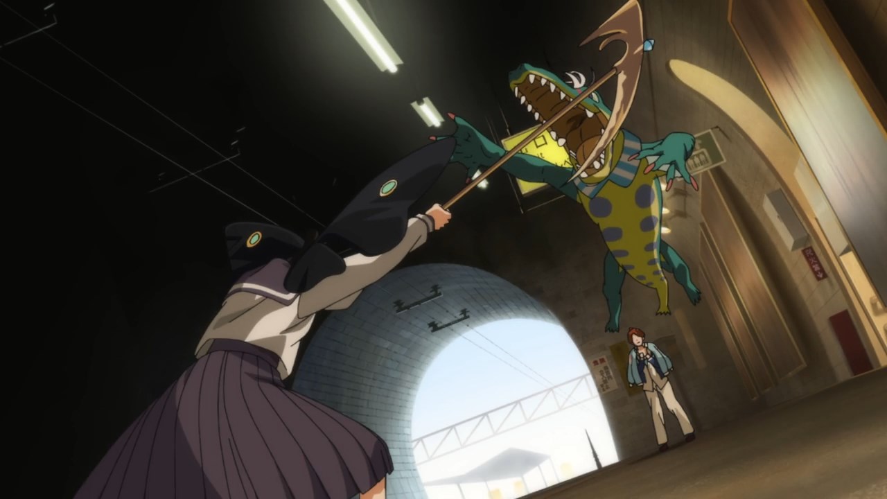 It’s certainly not the most subtle Wonder Egg has ever been, and some might argue that it’s even a little overbearing and in your face about the whole thing. I wouldn’t be one of them though, since I think that we see so little sympathetic and meaningful trans representation in media that shoving the message front and centre is excusable. The post battle scene is a lovely little cap on the story as well, as Momoe gently points out Kaoru is himself falling into a cliched male stereotype, and the two of them validate their identities to each other. Notably, although her introduction episode established that the girls she saves confess their love to her all the time, this is the first time we see Momoe get genuinely flustered about it, probably because it was done by a man acknowledging her as a woman. It’s heartening that the show can still find time for delicate character stuff like this amid the gathering clouds of the finale.