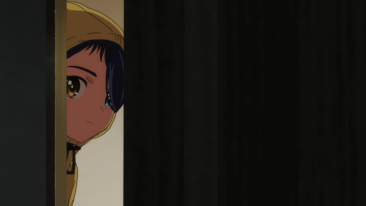 The core thing which makes this huge change in style work is that the show remembers that at heart it’s a character drama and that its strongest moments have all been around its characters. By having Ura-Acca explain the two scientists’ backstory from his own personal viewpoint, it invests it with a level of personality and emotion that you wouldn’t get from a straight exposition dump. The writing here is also smart and economical with the limited time that they have. Why do the Accas decide to create a person? Ultimately the answer doesn’t matter as much as the fact that they did it, so the story wisely decides that it doesn’t need to spend any time on it. Instead, we get to spend more time observing the actual relationships at play. Of course that includes the relationship between Frill and her ‘father’ figures, but it also encompasses the relationship between Acca and Ura-Acca, between the two of them and Azusa, and of course between the pair and Himari.