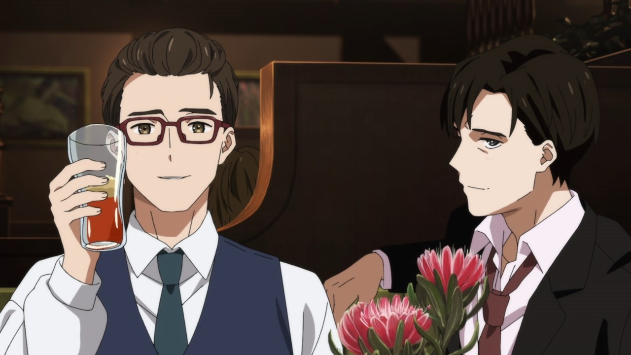 The great strength of the episode is how it charts the tangled web of these relationships forming and breaking. A Wonder Egg strength throughout the run has been how strongly it’s adhered to the ‘show, don’t tell’ rule, and how it’s leveraged the ambiguities that are sometimes inherent to that method into rich grounds for speculation and interpretation. Take for example how we find our scientific duo at the beginning of this episode – they’re obviously research partners, but the level of domesticity and interplay between the two suggests something deeper. Are they romantically involved? The show doesn’t go out of its way to confirm or deny (even Frill’s ‘husband’ comment can be taken sincerely or ironically), leaving you to draw your own conclusions, but it certainly adds an important subtext to what transpires. Two men in a relationship could never hope to have a child through natural means, so does Frill represent their desire for a daughter to call their own? If so that adds another layer of poignancy to what unfolds. The use of Ura-Acca here as the viewpoint character is important, as he’s both intimately involved enough to have major stakes in the story, yet far enough away to be effective as an audience proxy.
