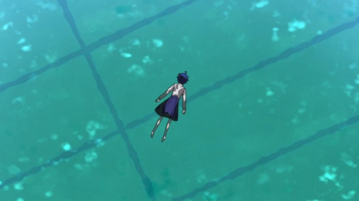 - There’s a recurring visual of barefootedness throughout the episode. Ai2 drowned herself in the pool while barefoot, ‘our’ Ai takes off her shoes and socks upon meeting Koito, and Koito herself is barefoot throughout. Barefootedness can represent childhood and innocence, but is also a classic signifier of the dead. In Japan especially, removing your shoes is seen as a precursor to suicide.