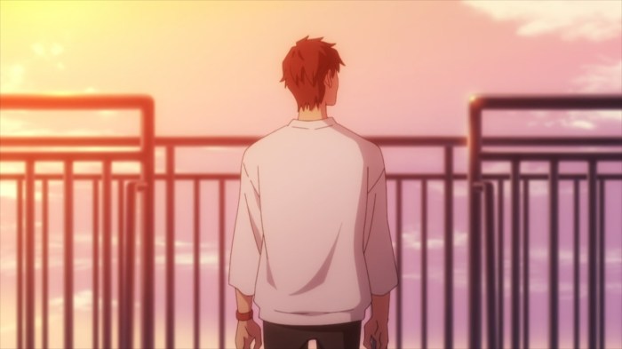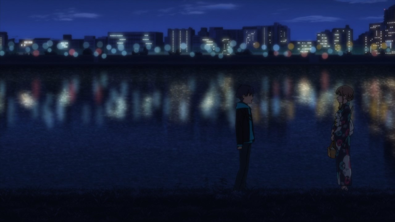 Equally good is what feels like the culmination of Yume’s arc, at least from a thematic point of view. For a few episodes now the question of Kano’s death has swirled around her mysterious ex-boyfriend Futaba Senda, who has been frustratingly difficult to track down. Lo and behold, he shows up of his own volition here and…he’s totally normal and just as baffled about the circumstances of Kano’s death as everyone else. He offers some observations, but it’s clear that they’re his opinions rather than irrefutable facts, whatever he says. By the time he leaves, we’ve basically learnt nothing we didn’t already know, and of course that’s the point. By traditional storytelling standards this is a major anticlimax, but the idea here is to emphasise that unexpected deaths often leave us with difficult questions that have no easy answers. The lack of closure isn’t a further tease, it’s the reason the scene exists at all. When Yume breaks down and angrily asks why Futaba didn’t save her, his nonchalant reply may appear cruel on the surface, but I read it more as a rhetorical rumination of long-held guilt. Death often comes suddenly and unexpectedly, and it can be hard for those left behind to truly believe that it could not have been foreseen. When Futaba says “Most people would think that”, he’s acknowledging that Yume’s lashing out is natural and understandable, but it also seems that he himself has made peace with what happened, regardless of what others think. It’s frustratingly open-ended, but again, that’s often how life is.