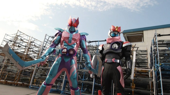 - Mammoth form is a fairly obvious tribute to the train-themed Kamen Rider Den-O, while Ptera form is a little more subtle but super-speed and Vice’s (extremely dumb and funny) appearance as a hoverbike peg it as a homage to Kamen Rider 555.