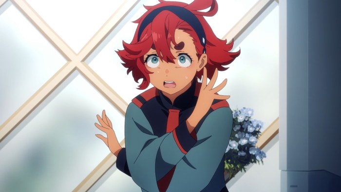 I’ve been burnt too often by promising starts in the venerable Gundam franchise. It could be said that Gundam has many great first episodes, but very few great last episodes. Thus, my impressions of The Witch From Mercury are based on what I’ve been shown so far.