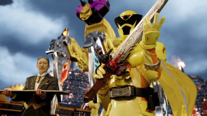 With all that said, the King-Ohger premiere had a lot of ground to make up to restore my confidence in the franchise. And you know what? It mostly accomplishes that. True to previous debut episodes this is an incredibly busy, hyperactive first instalment that throws way too much at you all at once, a frantic blend of extremely major exposition delivered in just a few seconds, and a visual palette that basically jumps off the screen and punches you in the face lest your attention waver for even a single second. It is, as it always has been, A Lot, and how you feel about that will probably dictate how you feel about this type of tokusatsu as a whole.