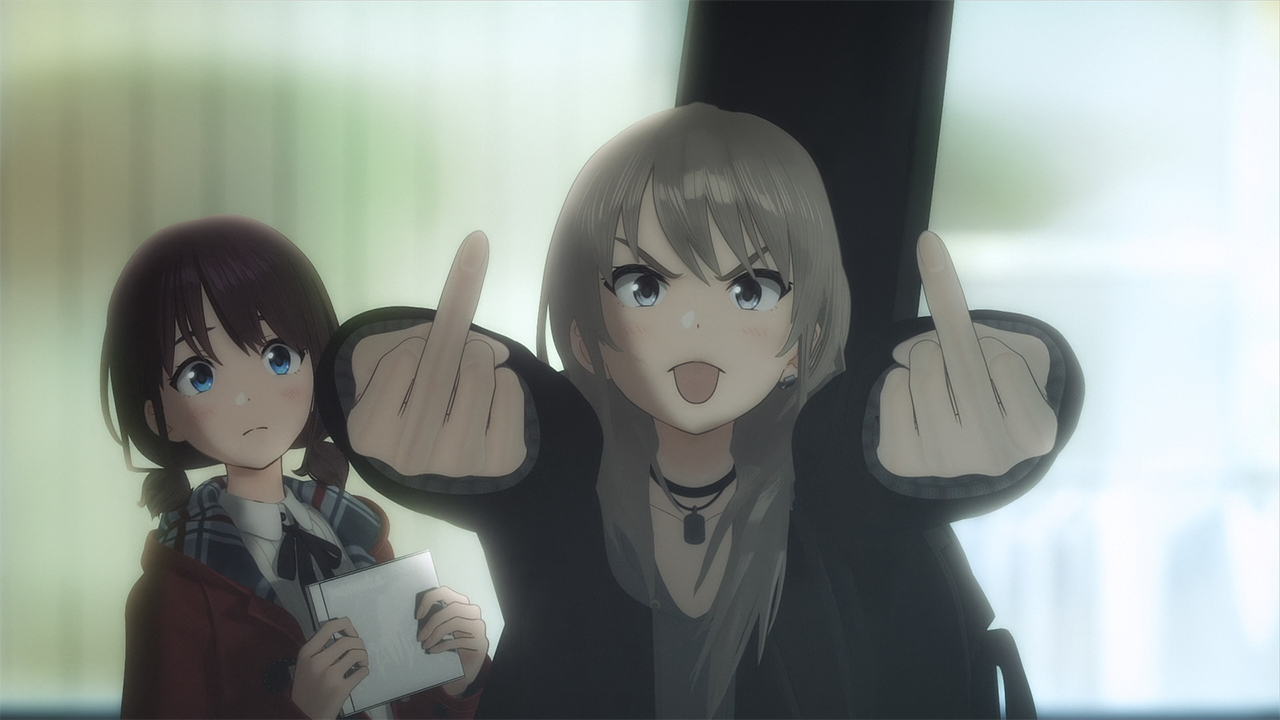 Nina Iseri is the voice of our generation. She’s a toxic neurodivergent lesbian barely holding her life together; fending off fraught family dynamics, a flailing creative career, and equally toxic friends she can barely tolerate. Girls Band Cry is the cute girls doing cute things (forming a rock band to middling success) anime for the jaded millennial. Sure, the girls are still going to shout ganbare and play at the festival, but it’s heavily tinged by an uncomfortably realistic friction. All of the girls of Togenashi Togeari are facing problems that don’t really get solved in a single episode, or even a single season of TV anime. They’re real problems, gummy and hard to root out. You learn to live with them because few have the privilege, opportunity, or resources to deal with them in a satisfying manner. And so you play. You play like your life is on the line, because sometimes that’s exactly how it feels. Because life is such a goddamn shithole that if you don’t do the thing you felt you were put on this planet to do, it isn’t worth living. And maybe nobody cares, the villains win, and the history judges you the loser. And you do it all again anyway, because what else are you going to do on this shit of an earth? Roll over and die? No you’ll give them the double bird and rock on.