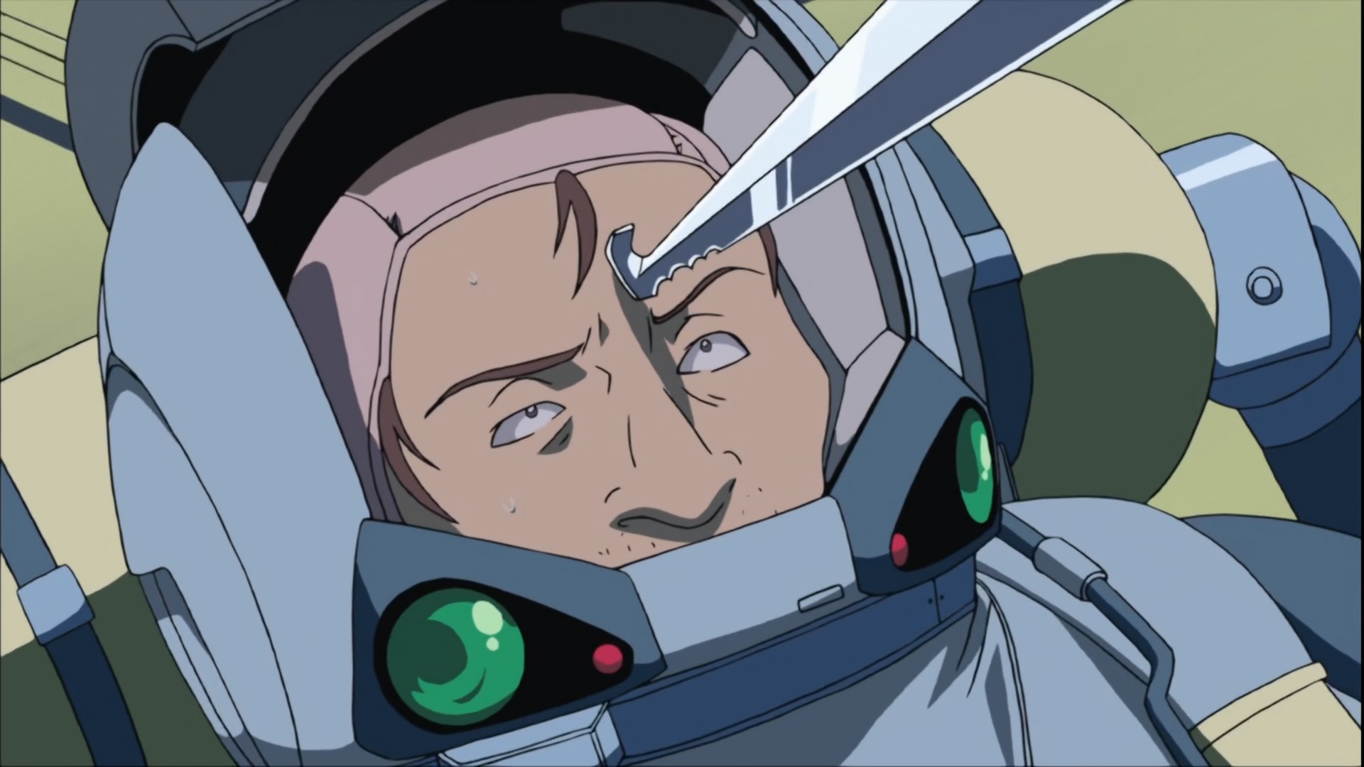 And yet, one specific image from Planetes sticks out in my mind more than any other. In an early episode, the crew finds some people doing illegal space dumping. There’s some conflict and whatnot and eventually the space cops show up to save the day. One of them tackles a guy and pulls out this fucking thing: