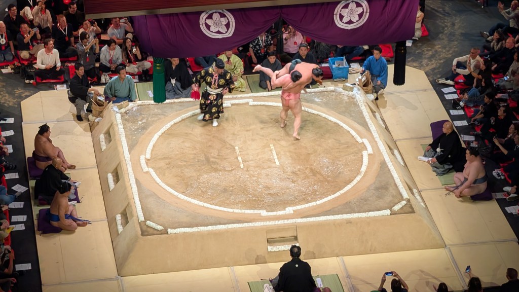 In July 2024, while flicking through the channels on the tiny hotel television, I came across a live broadcast of the yearly Nagoya tournament. This was the first time I’d ever actually seen the sport in action; my very limited knowledge of the sport being whatever I’d picked up via osmosis. I knew there were big guys trying to throw each other out of a ring, but that was about it. Oh, and whatever I’d seen in You Only Live Twice.
