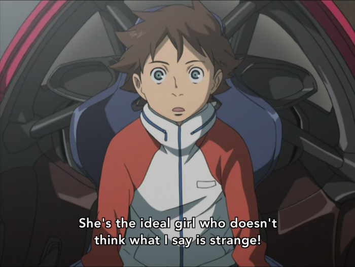Returning to a show after an extended time away is always interesting of course, but this show, this time period, and returning in this way is especially fascinating. When I first watched Eureka Seven I was 21 years old, and at that age I was obviously drawn more to the show’s surface level aspects – the big, operatic story of love at first sight, the extremely on-the-nose environmentalism, and the abundance of extraordinary robot battles. That’s not a bad thing – those elements are the things which made me fall in love with the show originally, and remain among my defining memories, but it’s also a lot of fun to go back and notice some of the more nuanced undercurrents in the writing; Holland’s journey from nihilism to a more mature, if still bitter, form of self-reflection, or the recurring themes of fatherhood and role models that are dotted throughout the narrative, or the sneaky evolution of Maurice as an actual, fully rounded character just in time to make him part of the narrative at the most dramatic possible moment. Part of the joy of a detailed rewatch is picking up on these slightly less obvious threads and seeing how they enrich the main narrative of the show.