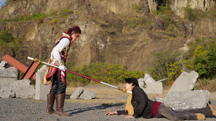 It’s very easy to identify the thing which ultimately makes Gozyuger so flimsy and disposable – it’s the overall story structure. While individual episodes can be solid or even good fun, the show is plagued by absolutely terrible long-term plotting and an almost schizophrenic inability to focus on arcs or build up necessary story points. This is most obvious in the treatment of ‘The Calamity’, the ragtag bunch of monsters who end up as the ultimate foes of the entire story. They appear only a handful of times, with almost no foreshadowing or attempts to establish their motivation or history, and are invariably killed off after only an episode or two of presence. Unsurprisingly, this makes them incredibly shallow and disposable villains, which even the writers themselves seemed to realise, given that they’re shoved aside to instead promote regular baddie Fire Candle to the role of last boss. Fire Candle might honestly be the most memorable character in the show, aided greatly by Daisuke Sambongi’s delightfully over-the-top performance, but he’s spent most of the show as a goofy sitcom nemesis to the Red Ranger that he’s just not credible as a big bad, making this more of a case of ‘least worst option’ rather than genuinely feeling like a culmination of his character.