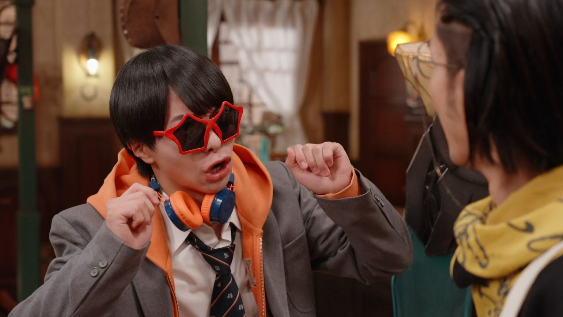 This bad writing also hamstrings our relationship with the main characters. Given how much time you’re going to be spending with them, making the Sentai team likeable or at the very least interesting is vital, but it’s another place where Gozyuger drops the ball. Red Ranger Hoeru is just sort of a bland, anonymous presence and while Mio Fuyuno is doing his best to ham it up, he just doesn’t have the charisma necessary to make something out of the table scraps he’s given. Blue Ranger Rikuo is just a stew of generic idol cliches and plots, while Yellow Ranger Ryugi wrings a few laughs out of his religious nutter schtick (and actor Masakazu Kanda is clearly throwing himself into it) but is also perhaps the most badly affected by indecisive characterisation, most notably in the arc where he quits the team and then returns a mere episode later. More successful in a comedic role is Green Ranger Kinjiro, who benefits from a good gimmick, a couple of decently restrained focus episodes, and a light-touch performance from Jin Matsumoto, occasionally ably aided by admirably game veteran Masaki Kobayashi. Sixth Ranger Kumade is probably my actual favourite member of the team, being an arrogant jerk and smug asshole with a heart of gold. It’s a pretty cliched archetype but it works here as an effective contrast to the rest of the team, who lean a little bit too much towards being goody-